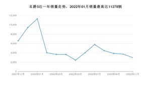 2022年11月,名爵5销量为2950辆,同比下降55.1%,环比下降20.7%。2021年11月-2022年11月份,名爵5销量为65790辆,同比下降20.72%。