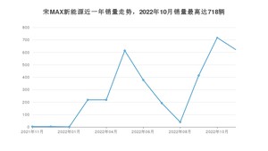 2022年11月,宋MAX新能源销量为622辆,同比增长20%,环比下降13.37%。2021年11月-2022年11月份,宋MAX新能源销量为3420辆,同比增长117.83%。