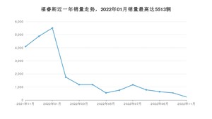 2022年11月,福睿斯销量为235辆,同比下降94.26%,环比下降57.04%。2021年11月-2022年11月份,福睿斯销量为23290辆,同比下降42.54%。