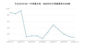 2022年11月,马自达CX-4销量为88辆,同比下降89.95%,环比下降28.46%。2021年11月-2022年11月份,马自达CX-4销量为4597辆,同比下降85.66%。