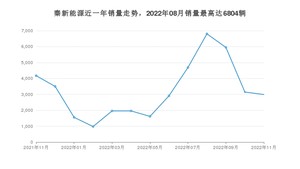 2022年11月,秦新能源销量为2991辆,同比下降28.34%,环比下降4.93%。2021年11月-2022年11月份,秦新能源销量为42239辆,同比下降10.67%。