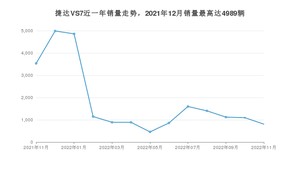 2022年11月,捷达VS7销量为807辆,同比下降77.16%,环比下降26.37%。2021年11月-2022年11月份,捷达VS7销量为23653辆,同比下降45.14%。