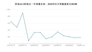 2022年11月,奔驰GLC轿跑销量为185辆,同比下降71.09%,环比增长6.94%。2021年11月-2022年11月份,奔驰GLC轿跑销量为4245辆,同比下降62.24%。