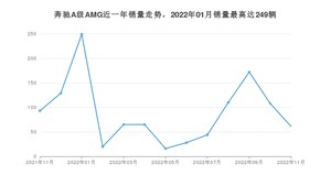 2022年11月,奔驰A级AMG销量为61辆,同比下降34.41%,环比下降43.52%。2021年11月-2022年11月份,奔驰A级AMG销量为1160辆,同比下降50.21%。