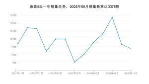 2022年11月,微蓝6销量为1390辆,同比下降18.38%,环比下降16.62%。2021年11月-2022年11月份,微蓝6销量为24394辆,同比下降4.09%。