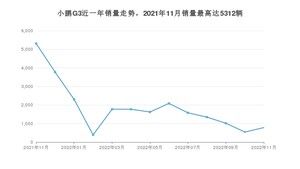 2022年11月,小鹏G3销量为782辆,同比下降85.28%,环比增长43.75%。2021年11月-2022年11月份,小鹏G3销量为24287辆,同比下降14.73%。