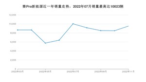 2022年11月,秦Pro新能源销量为9516辆,环比增长12.12%。2021年11月-2022年11月份,秦Pro新能源销量为75143辆,