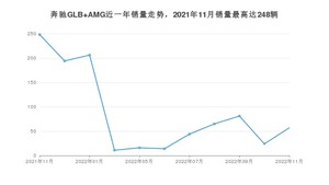 2022年11月,奔驰GLB AMG销量为57辆,同比下降77.02%,环比增长137.5%。2021年11月-2022年11月份,奔驰GLB AMG销量为960辆,同比下降54.93%。