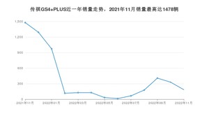 2022年11月,传祺GS4 PLUS销量为184辆,同比下降87.55%,环比下降44.07%。2021年11月-2022年11月份,传祺GS4 PLUS销量为5318辆,同比增长1.01%。
