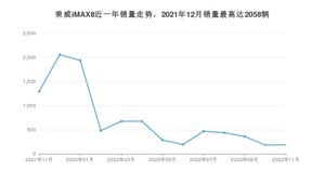 2022年11月,荣威iMAX8销量为187辆,同比下降85.55%,环比增长1.63%。2021年11月-2022年11月份,荣威iMAX8销量为9244辆,同比下降43.98%。