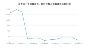 2022年11月,劲客销量为93辆,同比下降94.23%,环比下降59.03%。2021年11月-2022年11月份,劲客销量为6769辆,同比下降71.86%。