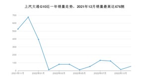 2022年11月,上汽大通G10销量为55辆,同比下降89.54%,环比增长292.86%。2021年11月-2022年11月份,上汽大通G10销量为2152辆,同比下降75.72%。