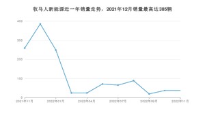 2022年11月,牧马人新能源销量为37辆,同比下降85.71%,环比持平。2021年11月-2022年11月份,牧马人新能源销量为1258辆,同比下降30.8%。