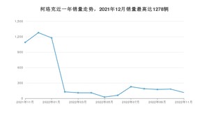 2022年11月,柯珞克销量为114辆,同比下降89.54%,环比下降37.02%。2021年11月-2022年11月份,柯珞克销量为4860辆,同比下降79.08%。