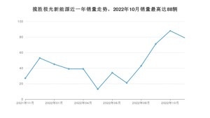 2022年11月,揽胜极光新能源销量为79辆,同比增长192.59%,环比下降10.23%。2021年11月-2022年11月份,揽胜极光新能源销量为552辆,同比增长1%。