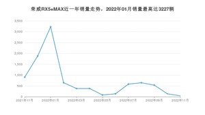 2022年11月,荣威RX5 MAX销量为42辆,同比下降95.34%,环比下降68.89%。2021年11月-2022年11月份,荣威RX5 MAX销量为9559辆,同比下降60.68%。