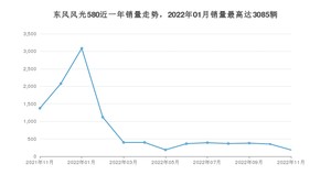 2022年11月,东风风光580销量为184辆,同比下降86.62%,环比下降47.73%。2021年11月-2022年11月份,东风风光580销量为10681辆,同比下降68.49%。