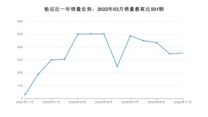 2022年11月,畅巡销量为353辆,同比增长1%,环比增长2.02%。2021年11月-2022年11月份,畅巡销量为4643辆,同比增长83.52%。