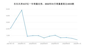 2022年11月,东风风神AX7销量为335辆,同比下降84.03%,环比下降41.23%。2021年11月-2022年11月份,东风风神AX7销量为18041辆,同比下降31.71%。