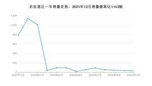 2022年11月,启辰星销量为33辆,同比下降95.81%,环比下降13.16%。2021年11月-2022年11月份,启辰星销量为3504辆,同比下降83.07%。