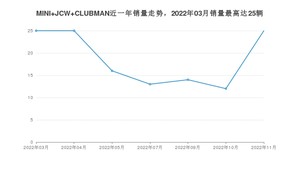 2022年11月,MINI品牌总体销量达到1594辆,其中MINI JCW CLUBMAN销量达到25辆,占品牌总销量的1.57%。