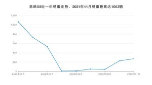2022年11月,思皓X8销量为272辆,同比下降74.41%,环比增长19.82%。2021年11月-2022年11月份,思皓X8销量为2947辆,同比下降81.64%。