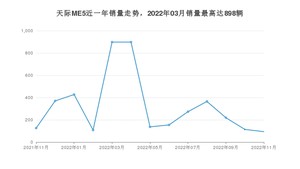 2022年11月,天际ME5销量为94辆,同比下降25.4%,环比下降17.54%。2021年11月-2022年11月份,天际ME5销量为4183辆,同比增长2%。