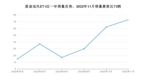 2022年11月,星途追风ET-i销量为73辆,环比增长17.74%。2021年11月-2022年11月份,星途追风ET-i销量为234辆,