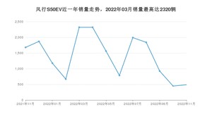 2022年11月,风行S50EV销量为488辆,同比下降70.94%,环比增长8.93%。2021年11月-2022年11月份,风行S50EV销量为18075辆,同比增长430.68%。