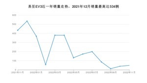 2022年11月,易至EV3销量为48辆,同比下降88.94%,环比增长23.08%。2021年11月-2022年11月份,易至EV3销量为2840辆,同比增长113.53%。