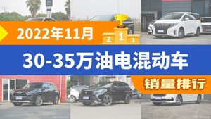 2022年11月的乘用车销量数据已经出炉,据众车网汽车行业数据监测显示,11月国内乘用车市场销量达到120.24万辆,同比下降30.33%,环比下降4.88%。每月各个细分市场的销量排行榜,也成为了大家所关注的话题,今天众车网为大家带来了,2022年11月30-35万油电混动车的销量排行榜单,有哪些车型能跻身销量榜呢?下面我们直接看数据。