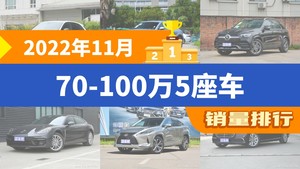 2022年11月的乘用车销量数据已经出炉,据众车网汽车行业数据监测显示,11月国内乘用车市场销量达到120.24万辆,同比下降30.33%,环比下降4.88%。每月各个细分市场的销量排行榜,也成为了大家所关注的话题,今天众车网为大家带来了,2022年11月70-100万5座车的销量排行榜单,有哪些车型能跻身销量榜呢?下面我们直接看数据。
