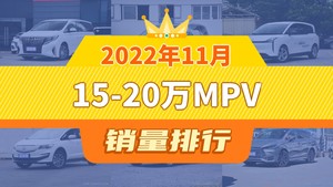 2022年11月的乘用车销量数据已经出炉,据众车网汽车行业数据监测显示,11月国内乘用车市场销量达到120.24万辆,同比下降30.33%,环比下降4.88%。每月各个细分市场的销量排行榜,也成为了大家所关注的话题,今天众车网为大家带来了,2022年11月15-20万MPV的销量排行榜单,有哪些车型能跻身销量榜呢?下面我们直接看数据。