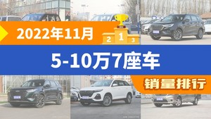 2022年11月的乘用车销量数据已经出炉,据众车网汽车行业数据监测显示,11月国内乘用车市场销量达到120.24万辆,同比下降30.33%,环比下降4.88%。每月各个细分市场的销量排行榜,也成为了大家所关注的话题,今天众车网为大家带来了,2022年11月5-10万7座车的销量排行榜单,有哪些车型能跻身销量榜呢?下面我们直接看数据。