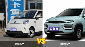 以热销车型进行对比,凌宝BOX搭载一台永磁/同步电机,纳米BOX搭载一台永磁/同步电机,凌宝BOX的最大输出功率要比纳米BOX更强劲,续航方面,两车一样。