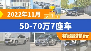 2022年11月的乘用车销量数据已经出炉,据众车网汽车行业数据监测显示,11月国内乘用车市场销量达到120.24万辆,同比下降30.33%,环比下降4.88%。每月各个细分市场的销量排行榜,也成为了大家所关注的话题,今天众车网为大家带来了,2022年11月50-70万7座车的销量排行榜单,有哪些车型能跻身销量榜呢?下面我们直接看数据。