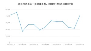 2022年12月,武汉市汽车总销量为41457辆,同比下降0.74%,环比增长91.98%。2021年12月-2022年12月份,武汉市总销量为384404辆,同比下降4.37%。在最近1年中,武汉市销量在2022年01月达到最高,销量为45435辆。