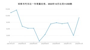 2022年12月,邯郸市汽车总销量为11250辆,同比下降15.93%,环比增长280.97%。2021年12月-2022年12月份,邯郸市总销量为99855辆,同比下降25.17%。在最近1年中,邯郸市销量在2022年01月达到最高,销量为14568辆。