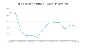 2022年12月,通化市汽车总销量为673辆,同比下降48.82%,环比下降8.56%。2021年12月-2022年12月份,通化市总销量为8552辆,同比下降43.63%。在最近1年中,通化市销量在2021年12月达到最高,销量为1315辆。