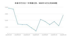 2022年12月,承德市汽车总销量为2838辆,同比下降26.7%,环比增长139.49%。2021年12月-2022年12月份,承德市总销量为24328辆,同比下降41.26%。在最近1年中,承德市销量在2021年12月达到最高,销量为3872辆。