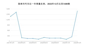 2022年12月,陇南市汽车总销量为1689辆,同比增长22.04%,环比增长586.59%。2021年12月-2022年12月份,陇南市总销量为6378辆,同比下降36.78%。在最近1年中,陇南市销量在2022年12月达到最高,销量为1689辆。