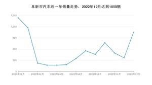 2022年12月,阜新市汽车总销量为1058辆,同比下降26.17%,环比增长189.86%。2021年12月-2022年12月份,阜新市总销量为7391辆,同比下降43.9%。在最近1年中,阜新市销量在2021年12月达到最高,销量为1433辆。