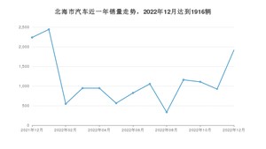 2022年12月,北海市汽车总销量为1916辆,同比下降14.31%,环比增长107.81%。2021年12月-2022年12月份,北海市总销量为14987辆,同比下降26.71%。在最近1年中,北海市销量在2022年01月达到最高,销量为2441辆。