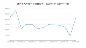 2022年12月,重庆市汽车总销量为41541辆,同比下降8.27%,环比增长377.54%。2021年12月-2022年12月份,重庆市总销量为394416辆,同比下降20.33%。在最近1年中,重庆市销量在2022年01月达到最高,销量为56201辆。