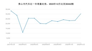 2022年12月,佛山市汽车总销量为30462辆,同比下降8.37%,环比增长30.25%。2021年12月-2022年12月份,佛山市总销量为310839辆,同比增长3.27%。在最近1年中,佛山市销量在2021年12月达到最高,销量为33245辆。