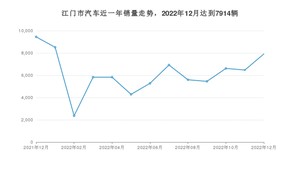 2022年12月,江门市汽车总销量为7914辆,同比下降16.25%,环比增长22.28%。2021年12月-2022年12月份,江门市总销量为80528辆,同比下降11.8%。在最近1年中,江门市销量在2021年12月达到最高,销量为9449辆。