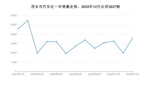 2022年12月,茂名市汽车总销量为3627辆,同比下降21.05%,环比增长85.62%。2021年12月-2022年12月份,茂名市总销量为40787辆,同比下降15.91%。在最近1年中,茂名市销量在2022年01月达到最高,销量为5451辆。
