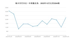 2022年12月,梅州市汽车总销量为2264辆,同比下降26.3%,环比增长119.81%。2021年12月-2022年12月份,梅州市总销量为22354辆,同比下降23.83%。在最近1年中,梅州市销量在2021年12月达到最高,销量为3072辆。