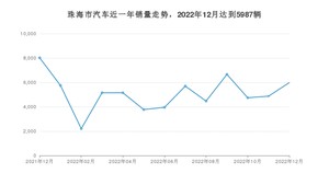 2022年12月,珠海市汽车总销量为5987辆,同比下降25.34%,环比增长22.91%。2021年12月-2022年12月份,珠海市总销量为66427辆,同比下降14.63%。在最近1年中,珠海市销量在2021年12月达到最高,销量为8019辆。