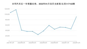 在国内市场上,吉利汽车,在2022年12月的销量为91698辆,同比下降14.01%,环比增长101.53%。2021年12月-2022年12月份,吉利汽车累计销量为743944辆,较去年同期下降24.48%。